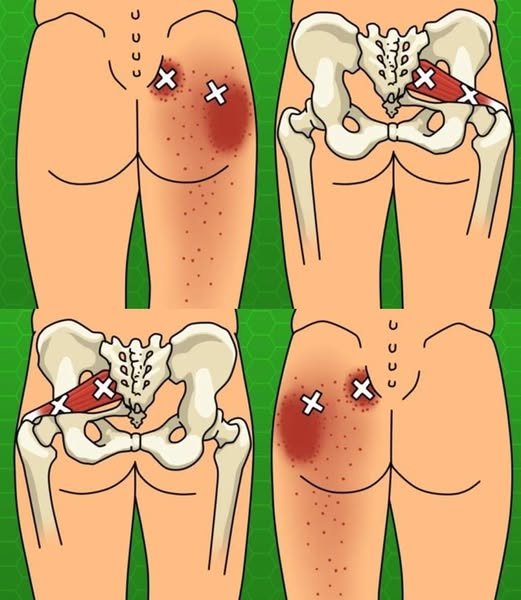 • Use técnicas como as da imagem acima, focando o músculo piriforme, que muitas vezes é o verdadeiro vilão por trás da dor.