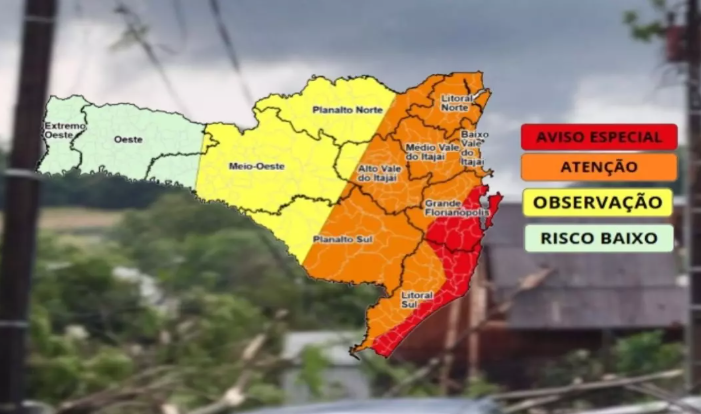 Segundo a Defesa Civil, o ciclone continua ativo e deve provocar ventos ainda mais fortes neste sábado, especialmente na metade leste do estado — com destaque para o Litoral Sul, Grande Florianópolis, Planalto Sul e Vale do Itajaí.